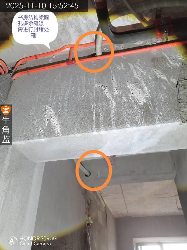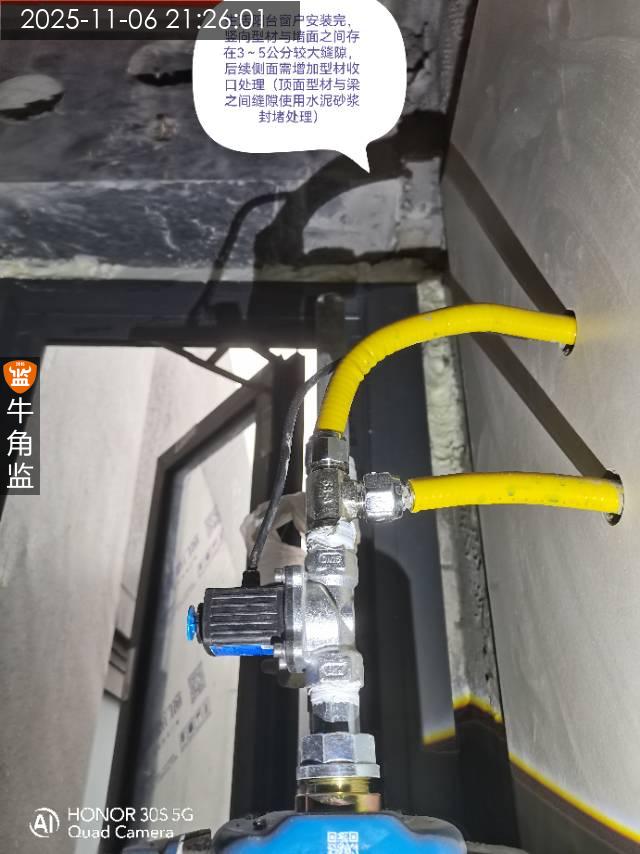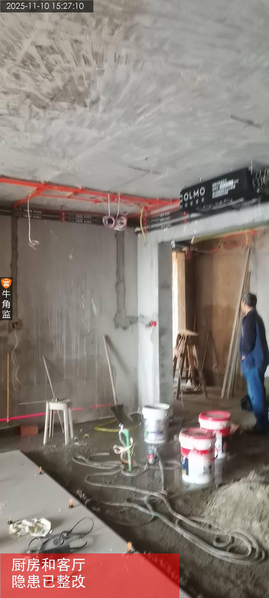 3.廚房油煙機煙道管未開始預埋,新止逆閥未安裝,已處理。煙道邊緣建議預留檢修口,未開始施工