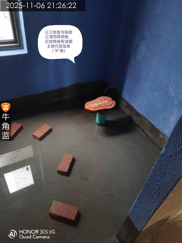 5.現場針對室內墻、地面已涂刷防水進行檢測,目前核實防水層未出現砂眼、開裂、透底情況