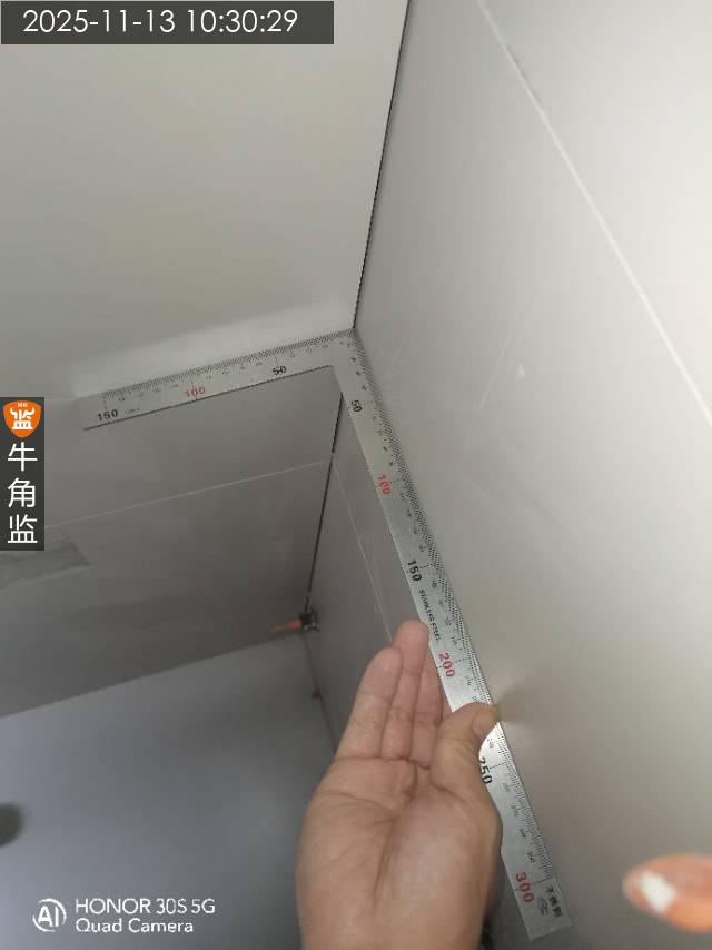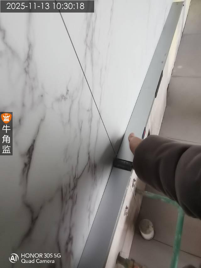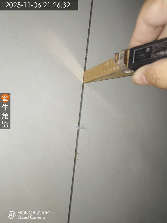 8.現場針對已鋪貼地磚進行抽查,目前主臥衣帽間地磚無大面積空鼓情況,平整度誤差目前抽查控制合理
