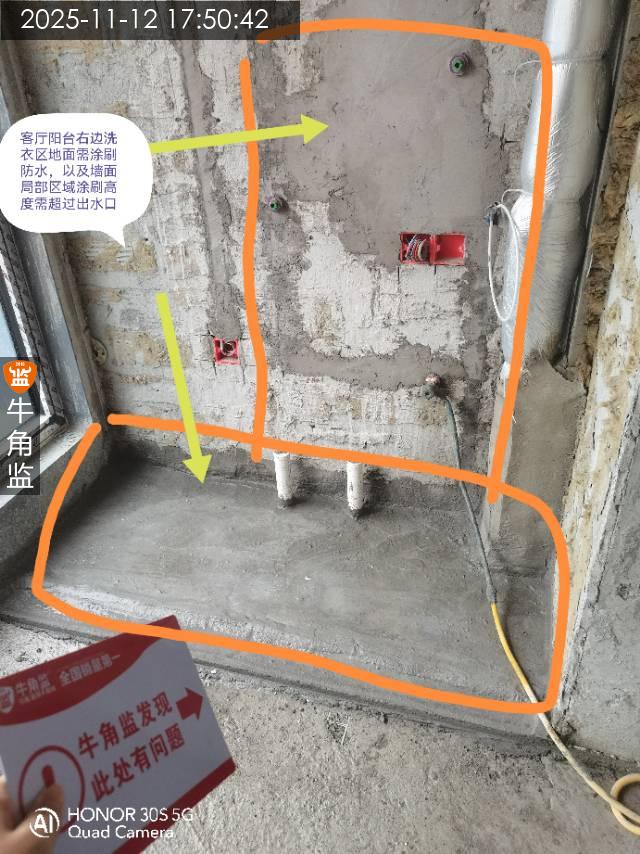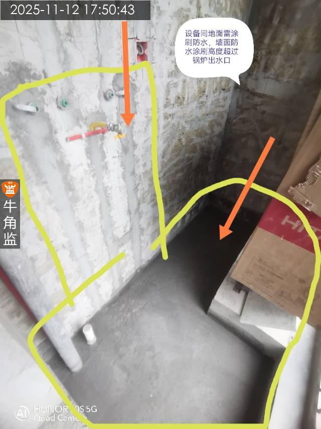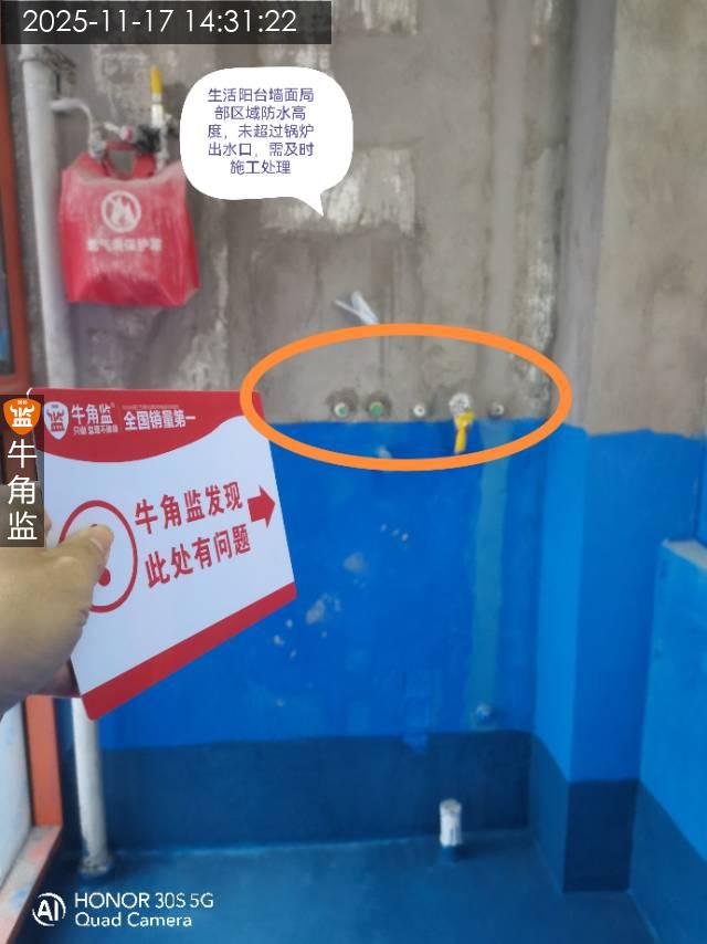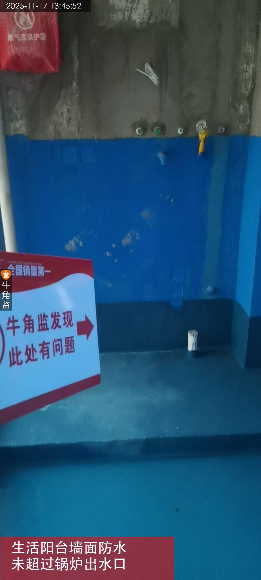 3.生活陽臺墻面局部區域防水高度,未超過鍋爐出水口,需及時施工處理