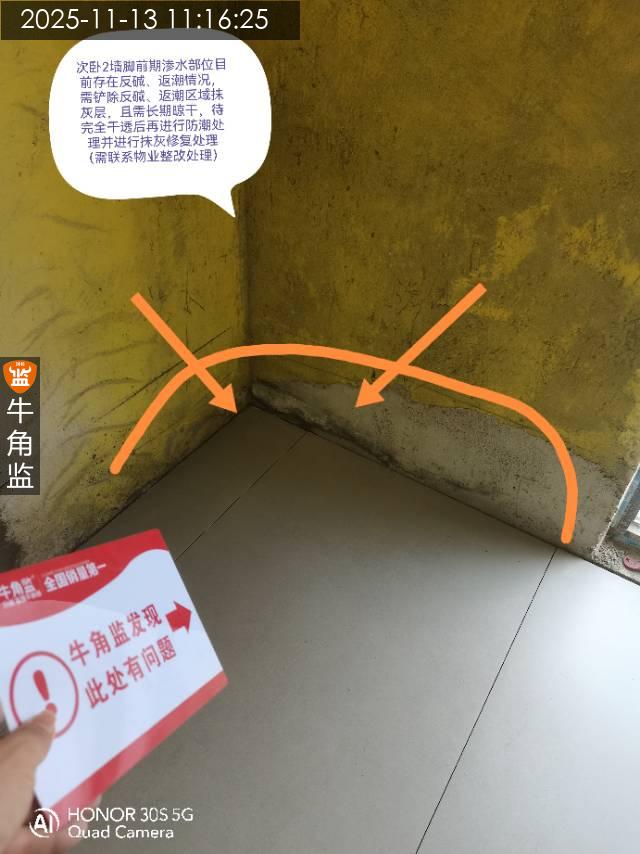 6.現場室內觀察廚衛背墻墻腳,目前核實未出現滲水、返潮反堿情況