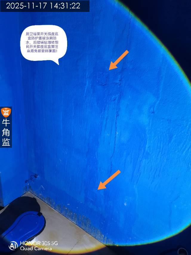 2.廚衛墻面開關插座底盒防護蓋被涂刷防水,后續鋪貼墻磚期間,開關插座底盒需注意避免被瓷磚覆蓋?