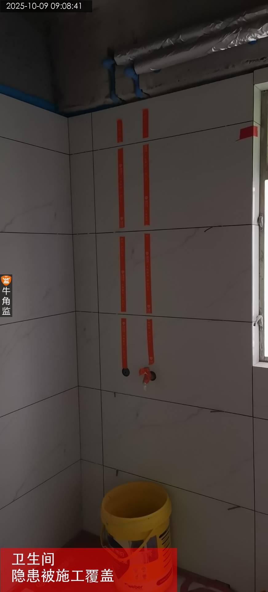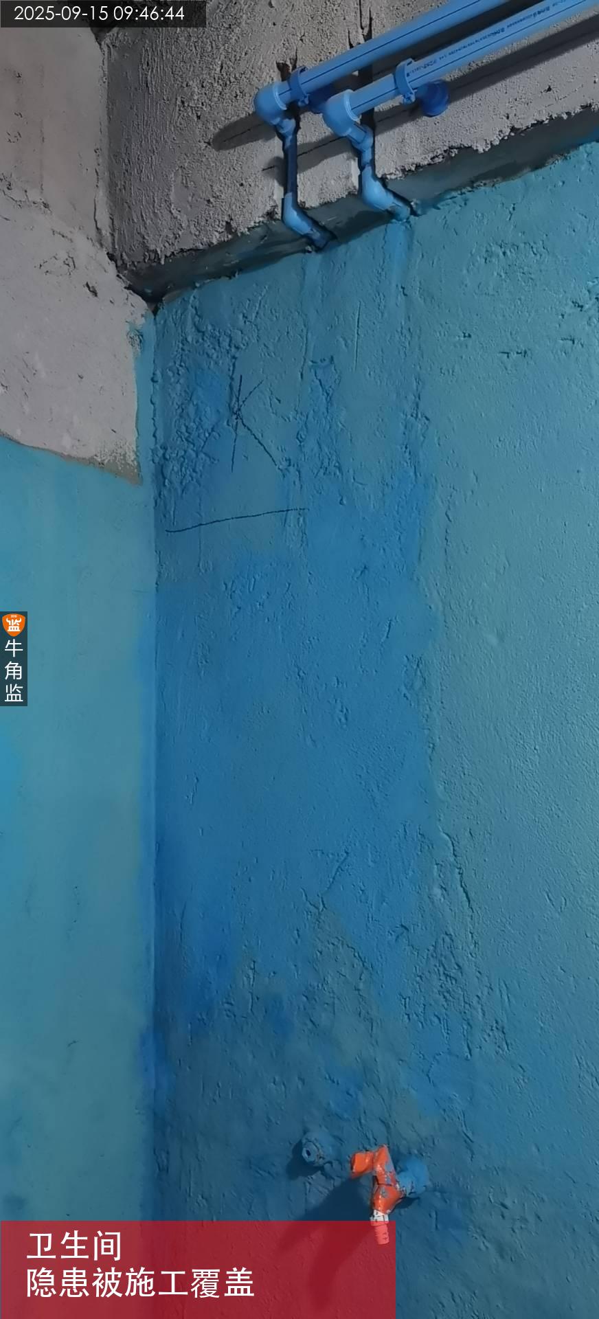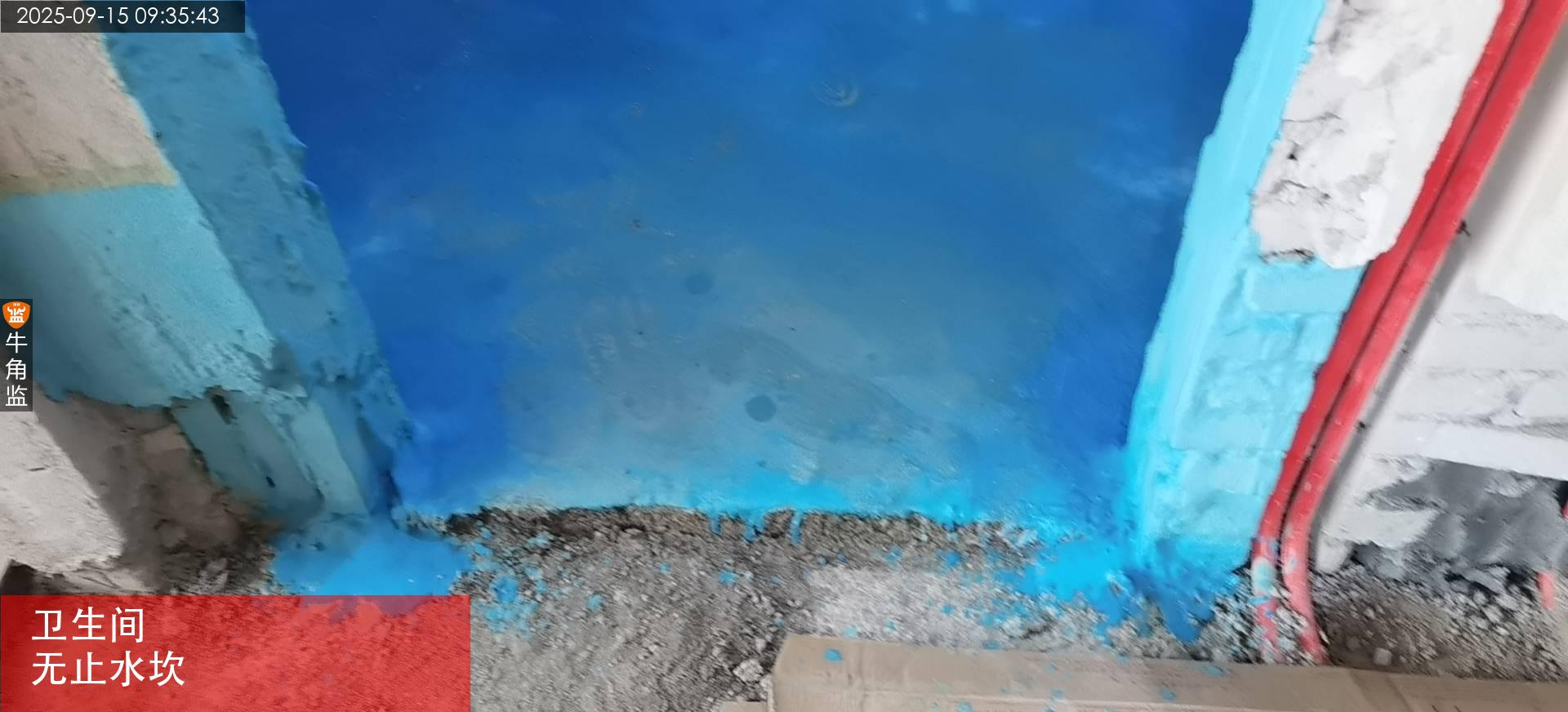 衛生間的背面墻根部,現場防水未驗收前不得提前隱蔽(鋪貼瓷磚或踢腳線),嚴禁堆放材料及雜物遮擋觀察蓄水狀況。
