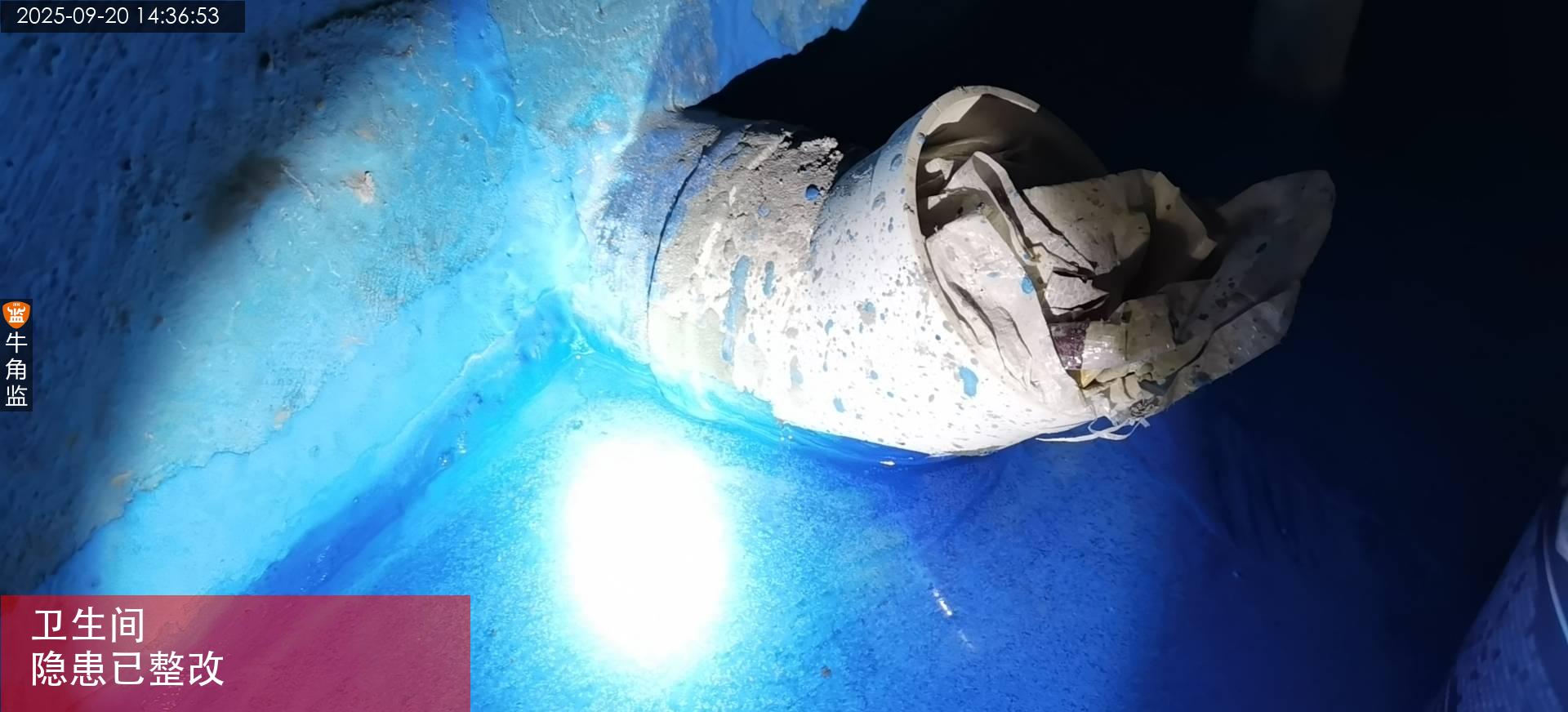 1、衛生間地面馬桶排水管的陰角部位有防水層開裂的現象,要求對陰角位置做抹弧處理再補刷防水。